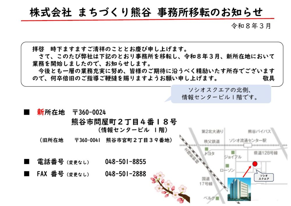 株式会社 まちづくり熊谷 事務所移転のお知らせ